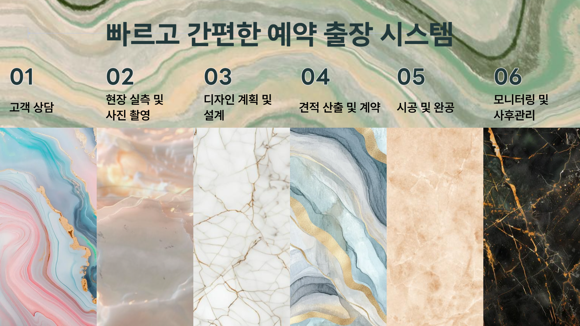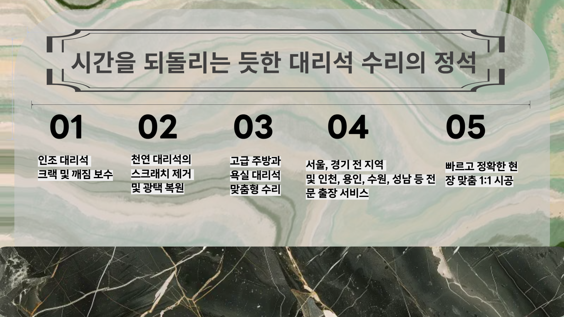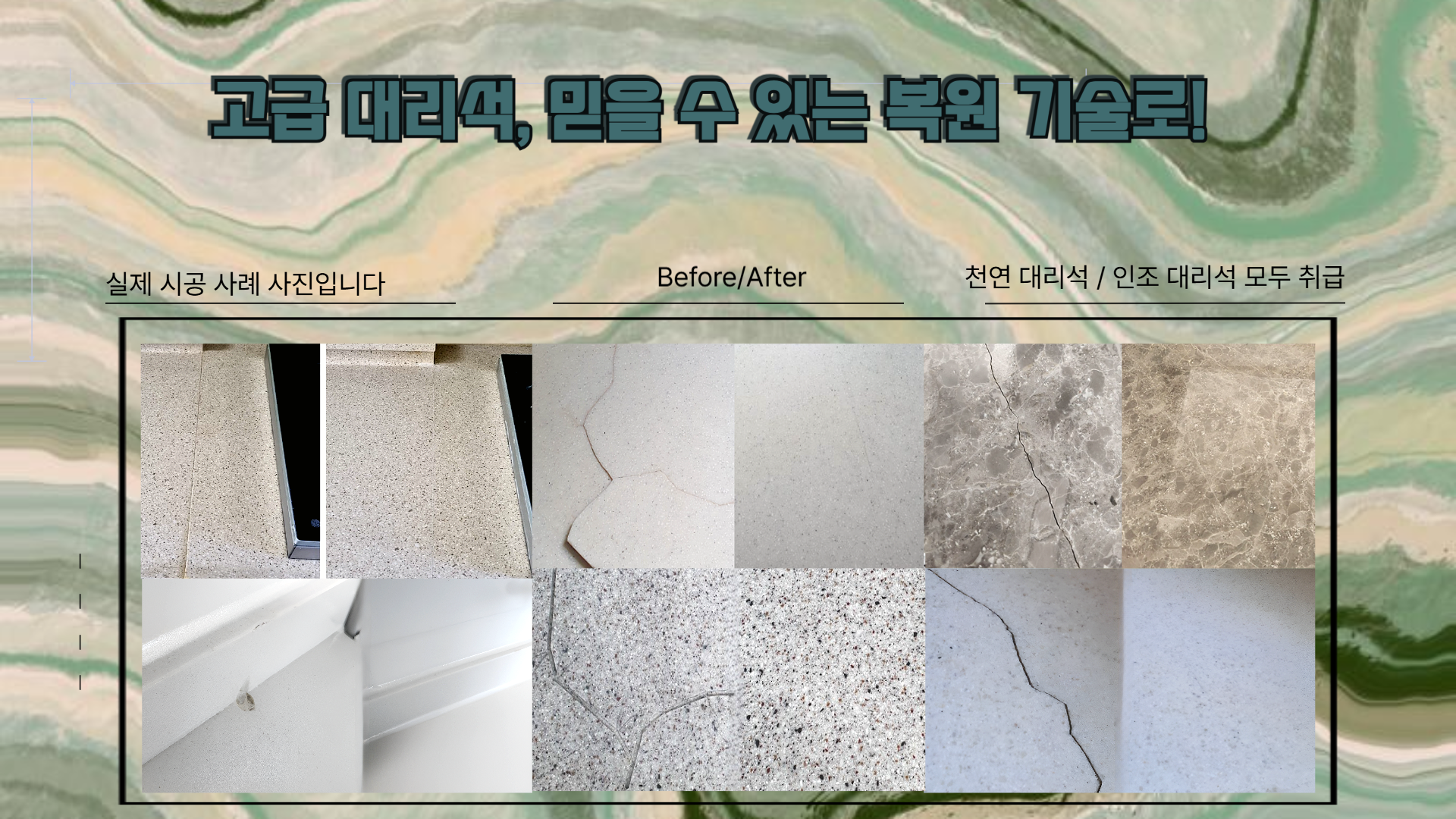 흰색, 검정색, 무늬 대리석 등 모든 종류의 복원이 가능합니다.